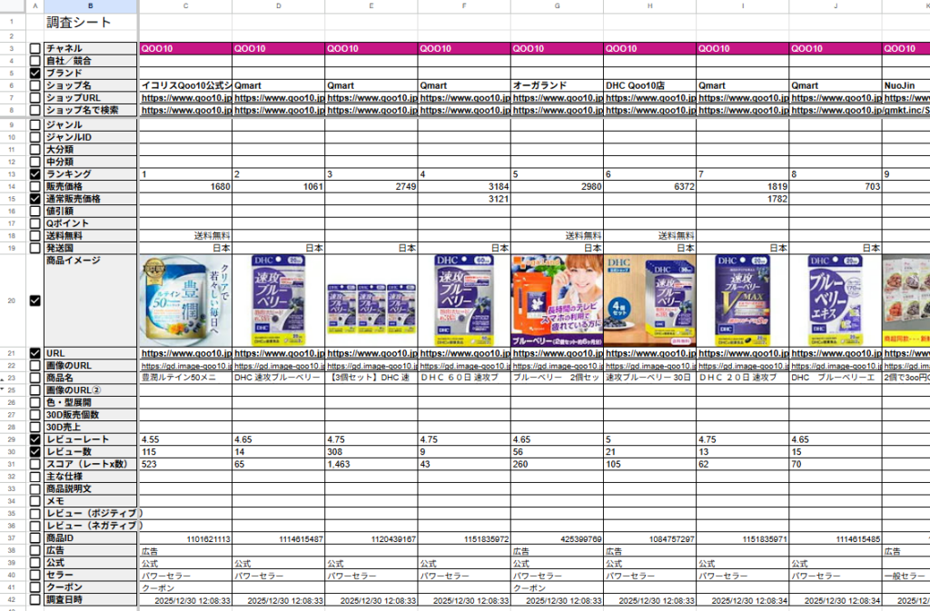 Qoo10検索結果を解析し「調査シート」を作成する方法