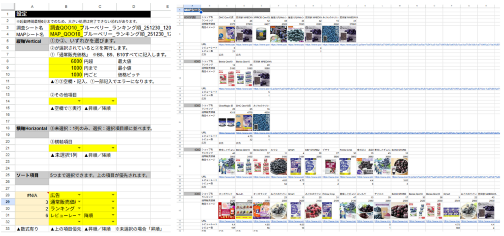 Qoo10検索 → 調査シート作成 → MAP作成